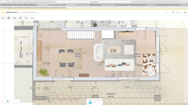 - La prestation de Conseil : visite au domicile, étude, proposition d’aménagement (plan et rendu 3D, montage photos, planche d’ambiance numérique). Le tarif est de 350 € TTC.